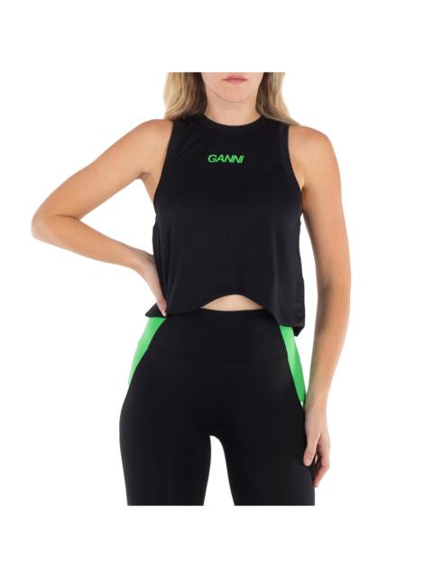 Ganni Black Active Logo Mesh Top