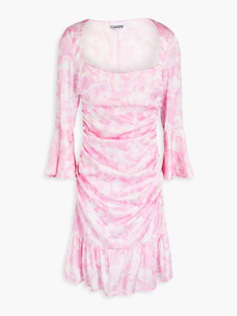 Ruched floral-print stretch-satin mini dress