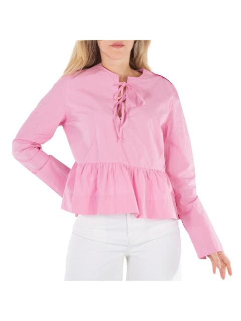 Ganni Orchid Smoke Tie String Peplum Blouse