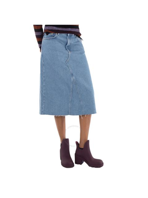 Ganni Ladies Light Blue Stone Denim Organic Cotton Midi Skirt