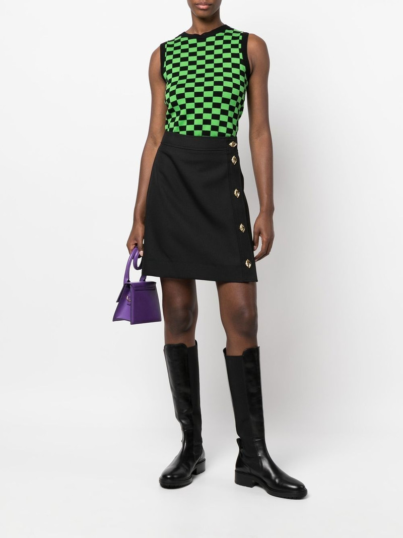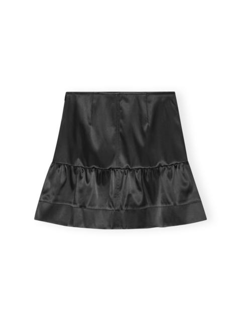 BLACK DOUBLE SATIN FLOUNCE MINI SKIRT