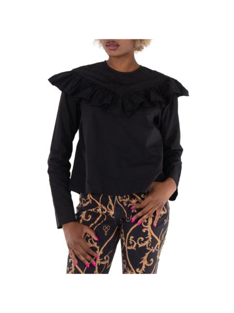 Ganni Bright White Cotton Poplin Ruffle Blouse