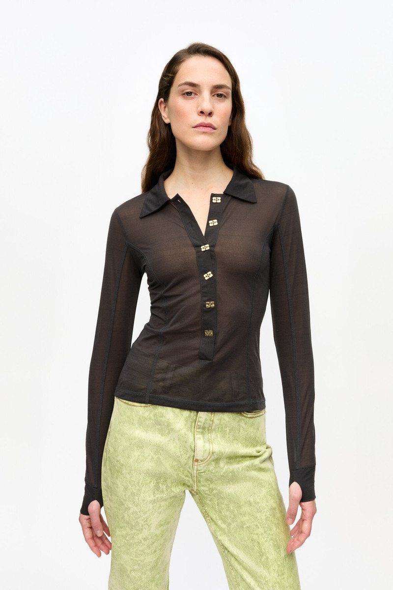 Explore the contemporary charm of GANNI tops, a standout in our exclusive range of women's clothing. GANNI offers a blend of playful and sophisticated styles that cater to modern fashion sensibilities. Elevate your wardrobe with their innovative designs, vibrant patterns, and sustainable materials. Dive into our curated collection to find the perfect top that effortlessly transitions from day to night, ensuring you stay chic and comfortable.