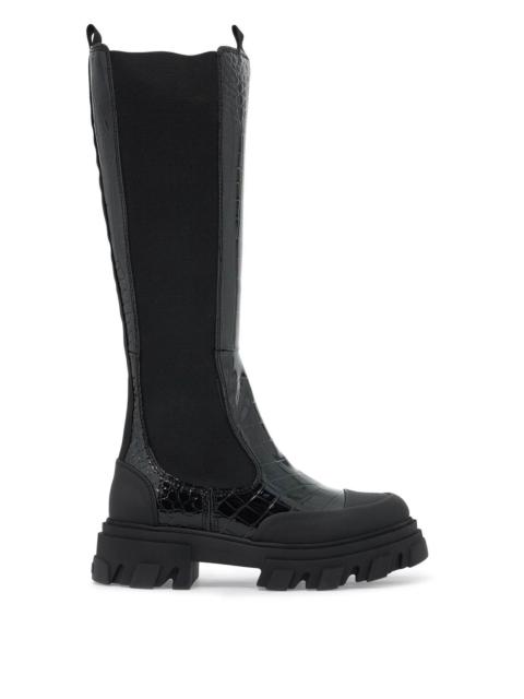 Ganni Women Eyelets Slouchy High Shaft Boots