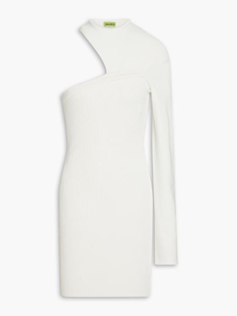 Tinino one-shoulder cutout ribbed-knit mini dress