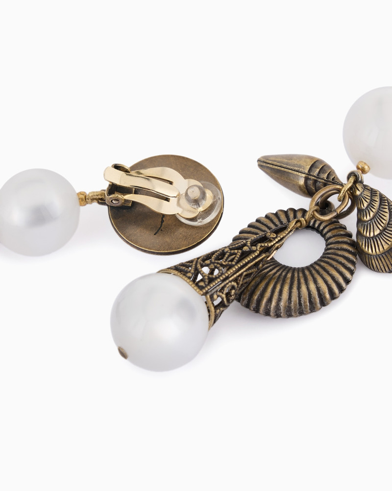 CLIP EARRINGS WITH A BRASS PENDANT AND SWAROVSKI CRYSTALS