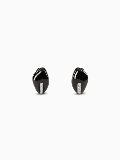 18K WHITE-GOLD, DIAMOND-AND-ONYX SÌ EARRINGS