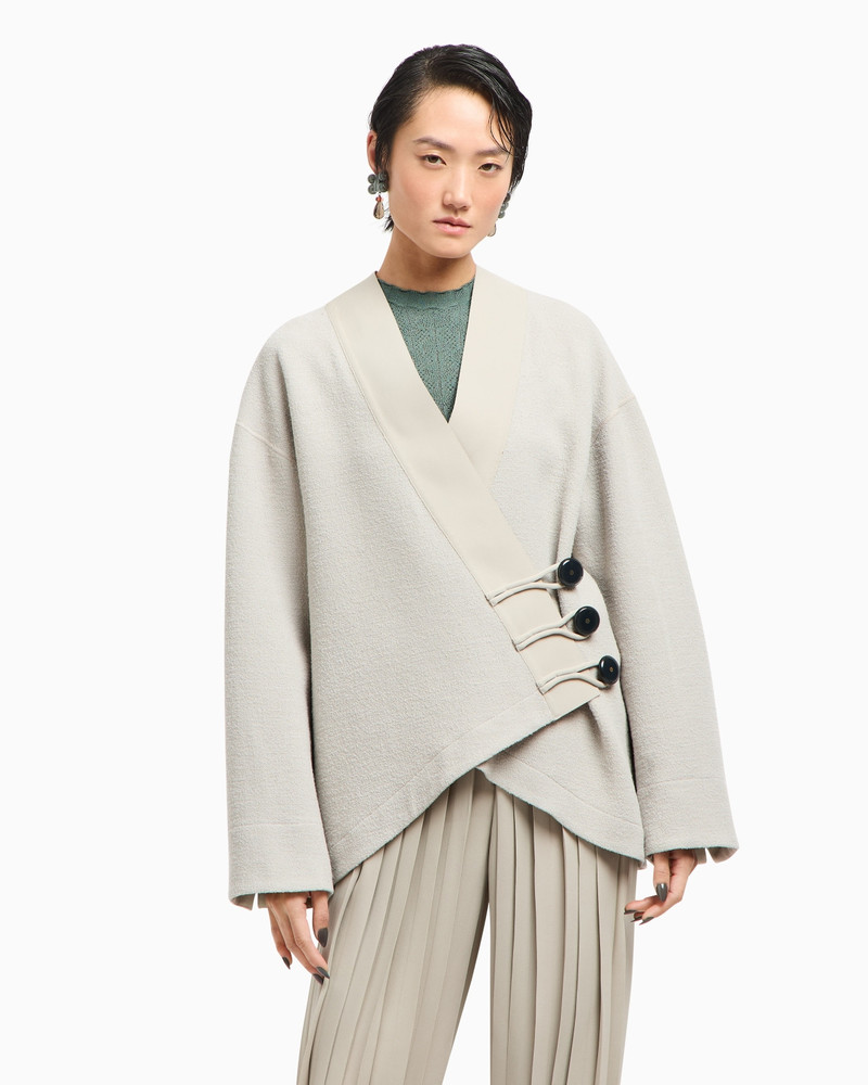 SILK, LINEN AND HEMP JACQUARD PEA COAT