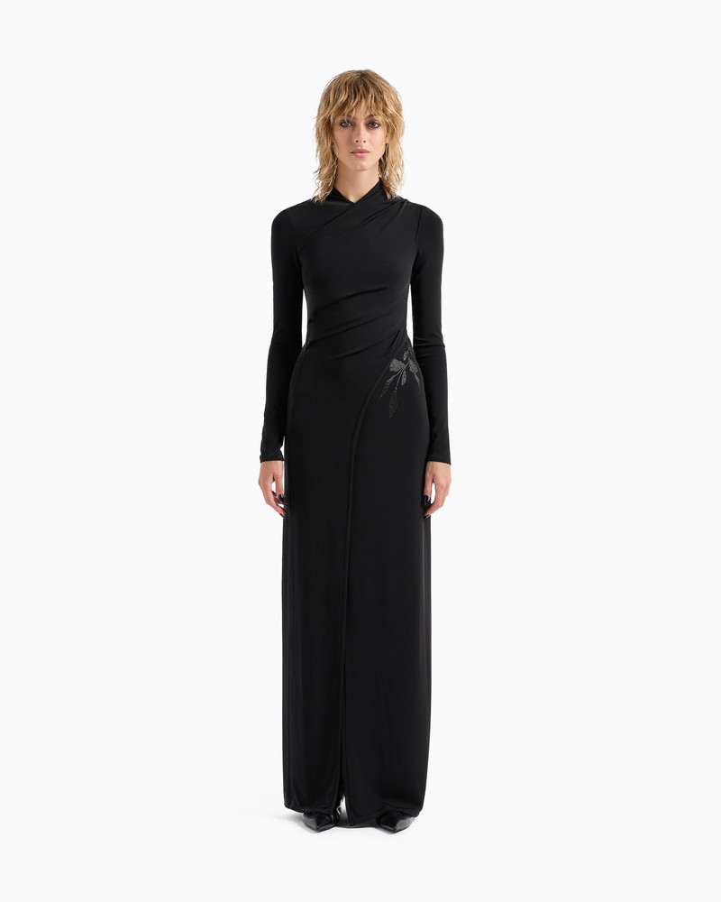 LONG DRESS IN VISCOSE JERSEY WITH RHINESTONE EMBROIDERY