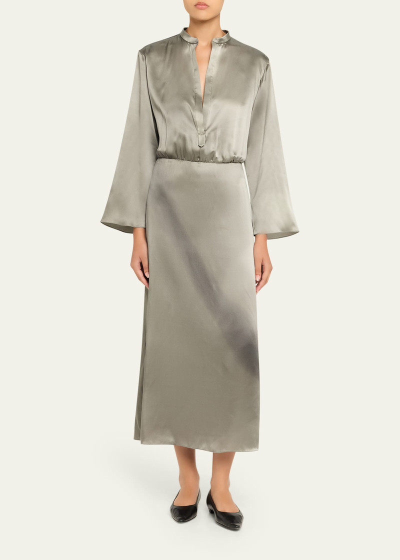 DOUBLE-FACED SILK-SATIN LONG DRESS