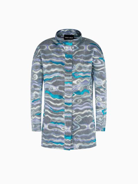 SINGLE-BREASTED LONG JACKET IN COTTON, LINEN AND SILK JACQUARD