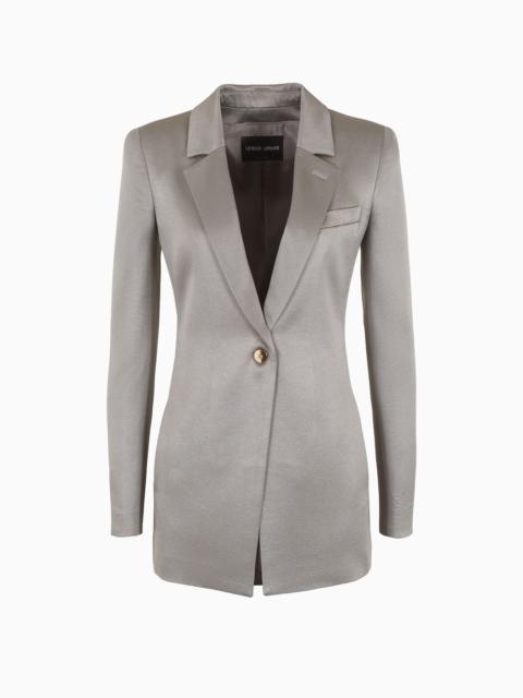 Long single-breasted jacket in silk cady