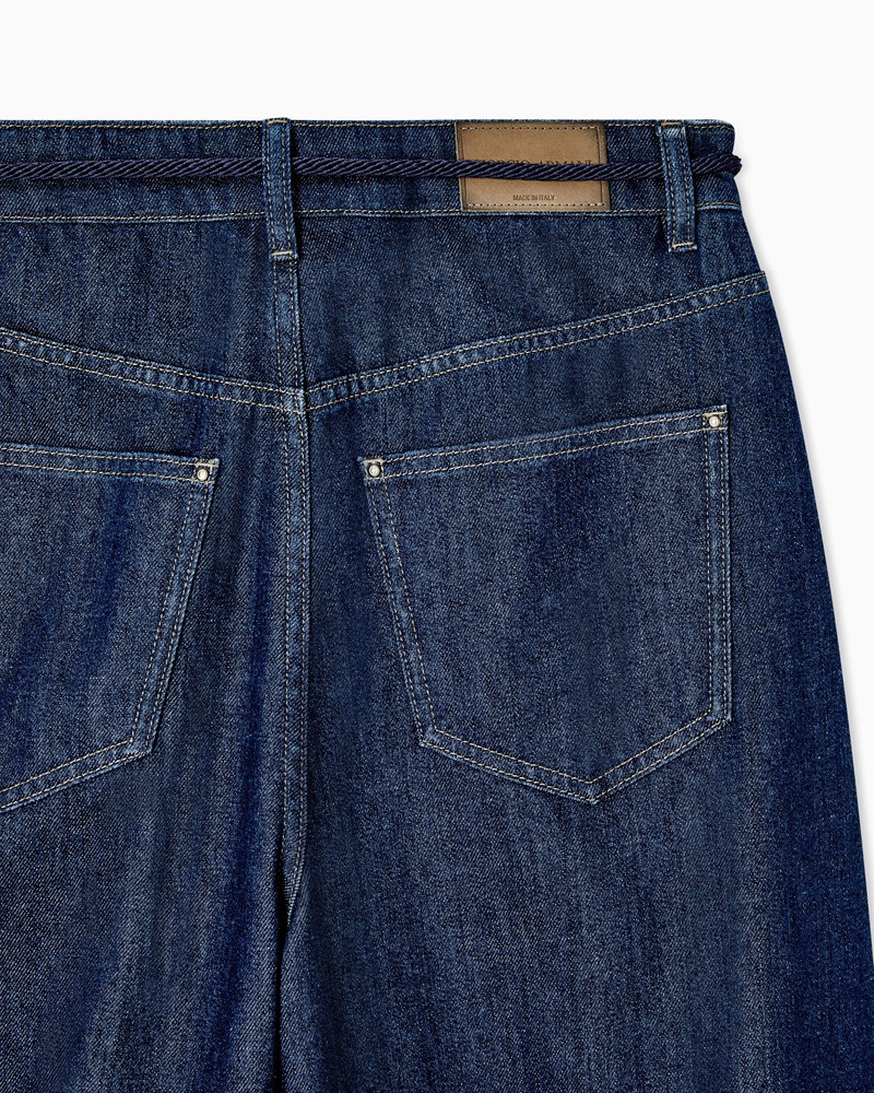 DENIM COLLECTION WIDE-LEG TROUSERS IN STRETCH COTTON DENIM