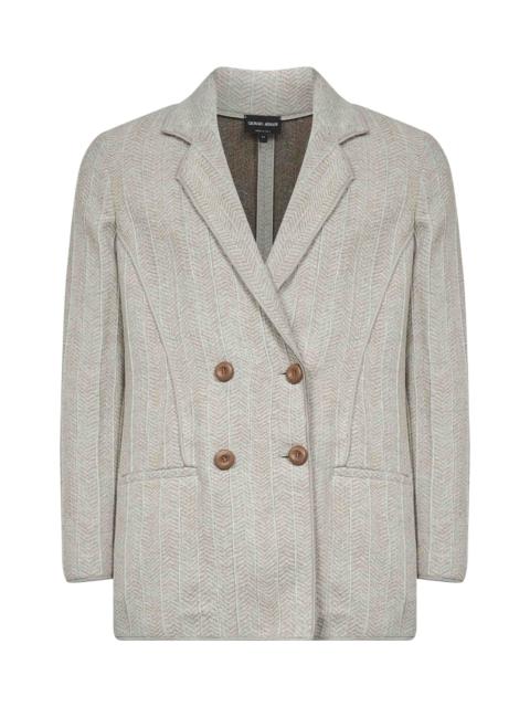 Giorgio Armani Women Beige Jacquard Jersey Double-Breasted Jacket