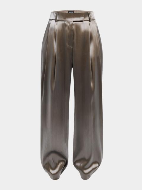 DOUBLE-SIDED SILK-SATIN TWO-PLEAT TROUSERS