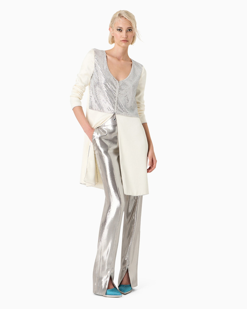 SINGLE-PLEAT JERSEY TROUSERS WITH A FLOCKED PRINT AND SEQUINS