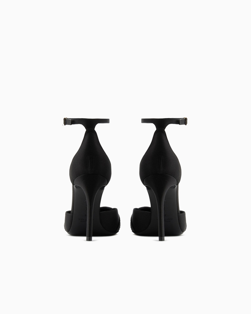 SATIN AND RHINESTONE ANKLE-STRAP PUMPS