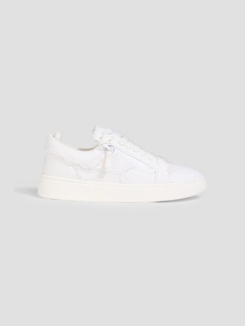 GZ City faux raffia-trimmed leather and canvas sneakers