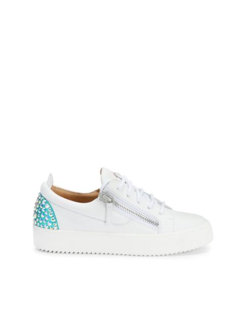 Step into the luxury of Giuseppe Zanotti sneakers, a premium addition to our exclusive women's shoe collection. Each pair of Giuseppe Zanotti sneakers exudes an edgy yet sophisticated style, designed for those who appreciate high-fashion and unparalleled craftsmanship.
