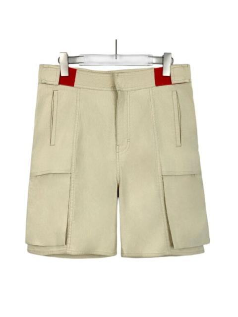 Givenchy Khaki Multi-Pocket Cargo Shorts Size 48 With Red Accents