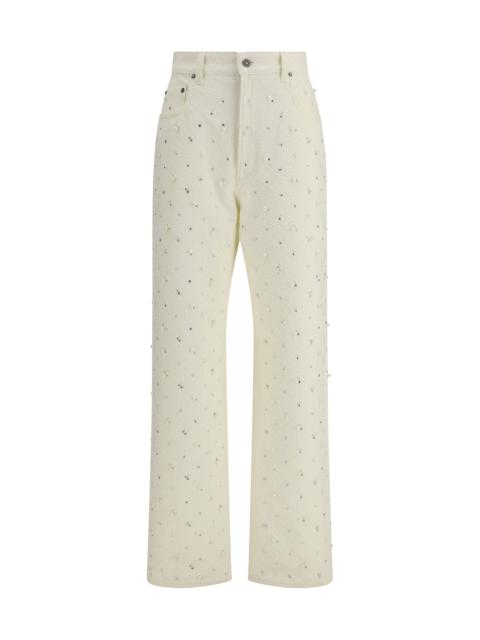Golden Goose Women White Denim Pearl And Crystal Embroidered Pants