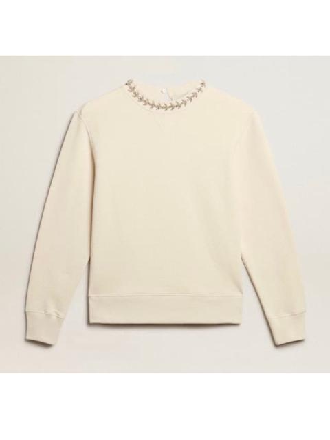 Golden Goose Deluxe Brand Women Crew Neck Sweatshirt In Organic Cotton Fleece With Crystals On The N