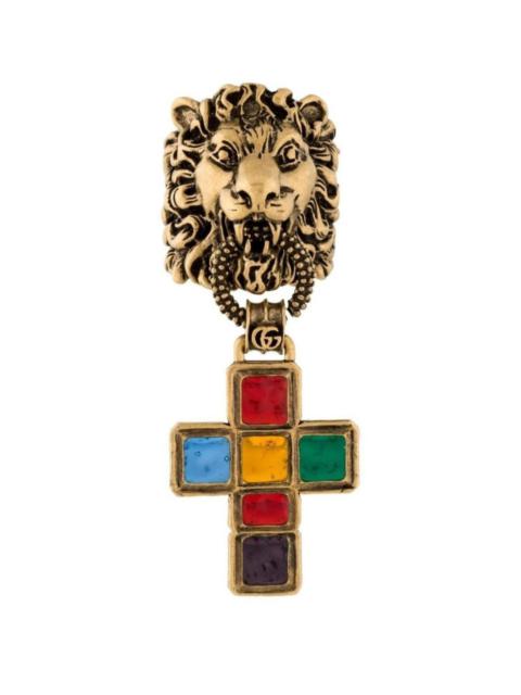Lion Head Cross Charm Ring
