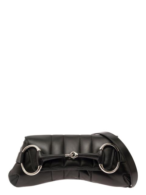 Gucci Women 'Medium Gucci Horsebit' Black Shoulder Bag With Maxi Horsebit In Leather Woman