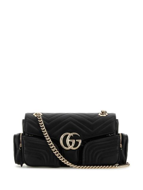 Gucci Women Black Leather Small Gg Marmont Shoulder Bag