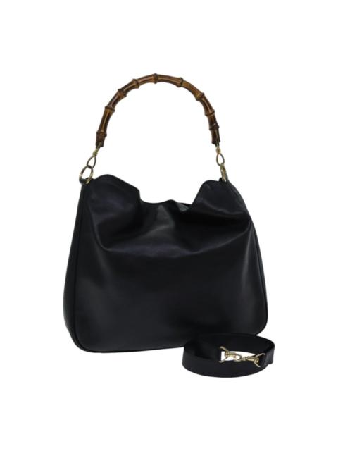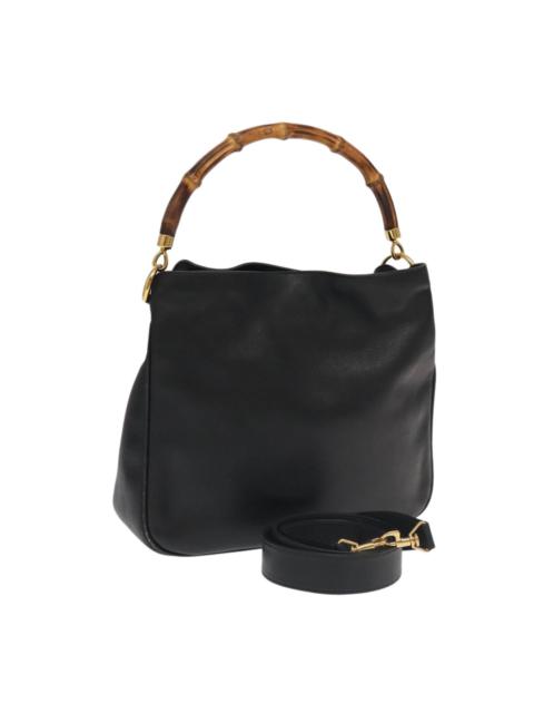 GUCCI Bamboo Hand Bag Leather Black Gold