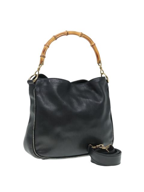GUCCI Bamboo Hand Bag Leather Black 001 001