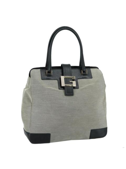GUCCI Hand Bag Canvas Leather Gray Black Gold