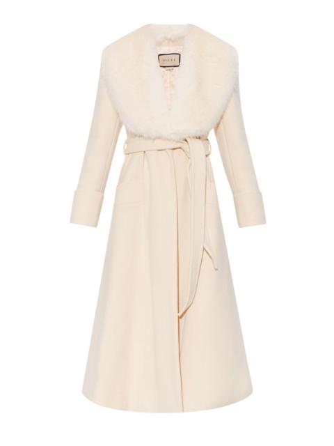 Gucci Women Black Single-Breasted Coat With Detachable Shearling Collar And Cuff In Wool And Cashmer