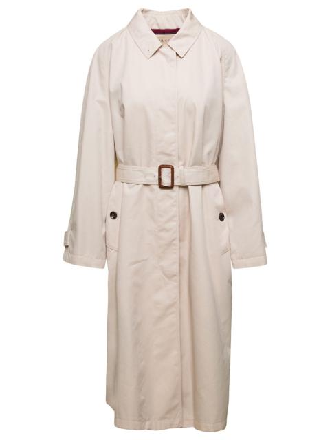Gucci Women Beige Single-Breasted Trench Coat With Matching Belt In Cotton Blend Woman