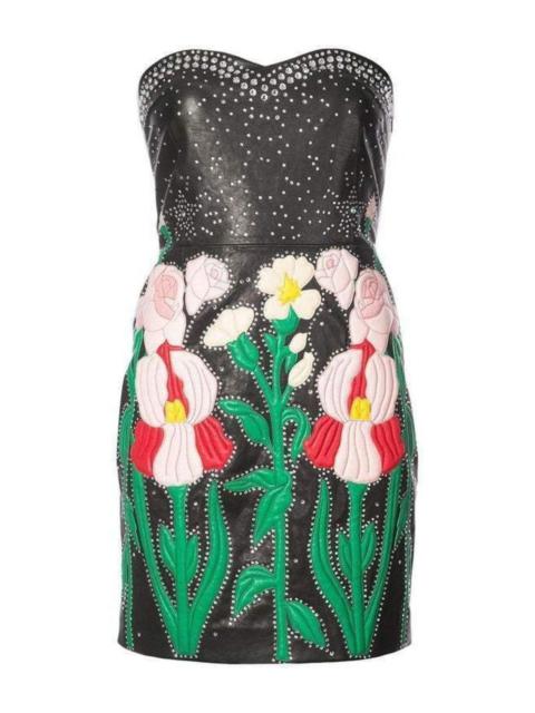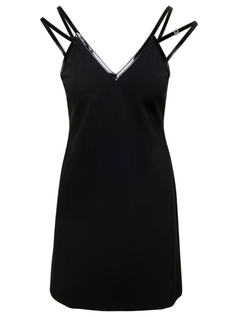 Gucci Women Mini Black Dress With Black Leather Trim And Double Strap In Stretch Viscose Woman