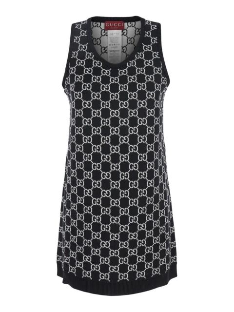 Gucci Women White Long Dress With Round Neck And Gg Embroidery On The Rear In Viscose Blend Woman