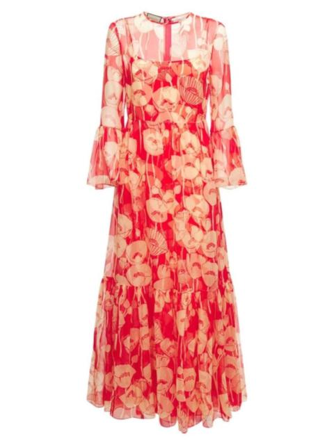 Green Floral Check-Print Ruffled Silk-Crepe Gown