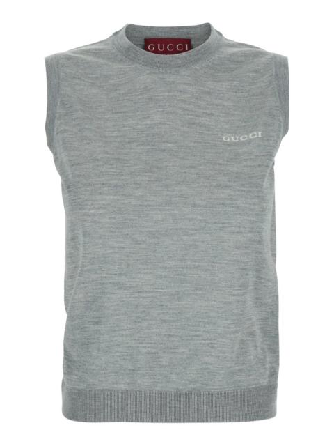 Gucci Women Grey Sleeveless Sweater With Logo On The Front In Cashmere Woman