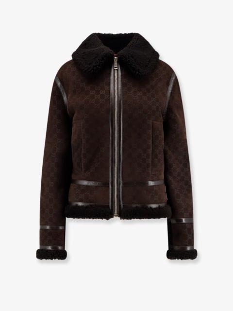 Gucci Women `All Over Gg` Embossed Leather Jacket