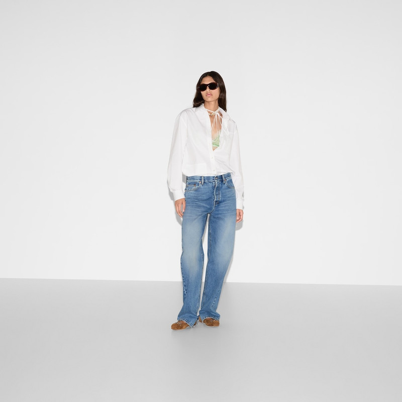 Explore the timeless appeal of Gucci jeans, a cornerstone of our luxury women's clothing collection. Every pair of Gucci jeans epitomizes the brand's dedication to superior craftsmanship and innovative design, offering a perfect blend of comfort and style.