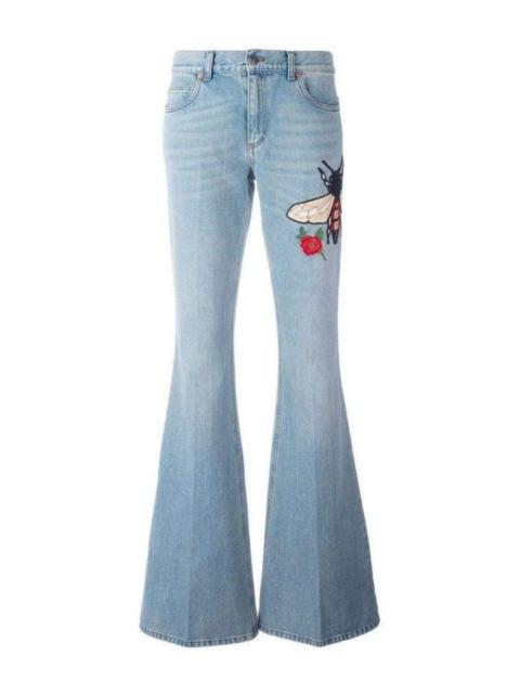Fly Embroidered Flared Cotton Jeans