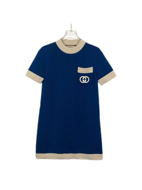 Gucci Womens Black & Gold GG Monogram Knit Short-Sleeve Dress With Pocket Detail