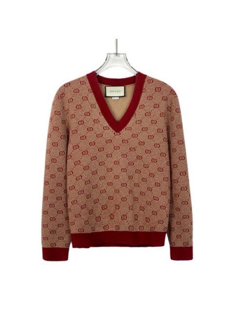 Gucci Red Wool V-Neck Long-Sleeve Knit Sweater
