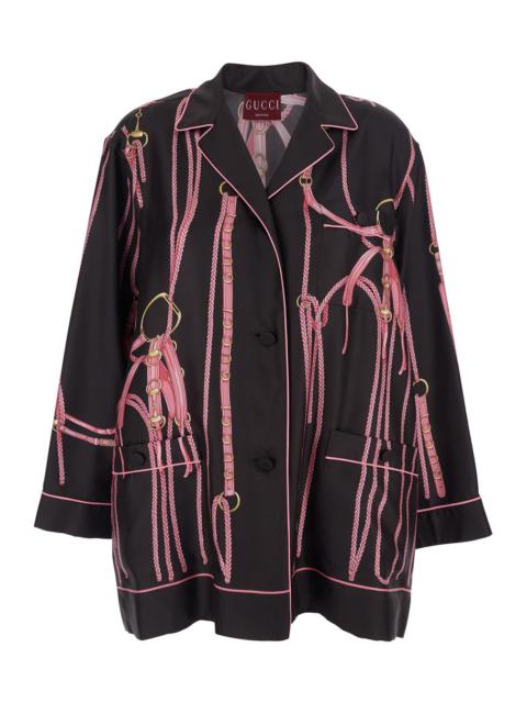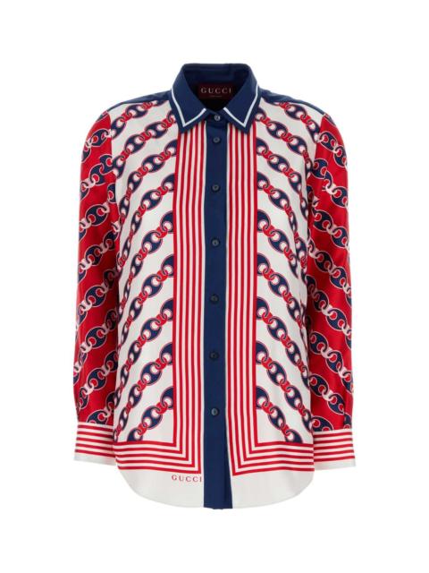 Gucci Women Brown Shirt With Classic Collar And All-Over Print In Silk Woman