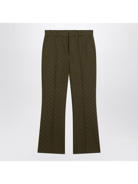 Gucci Military Green Trousers In Gg Fabric Women