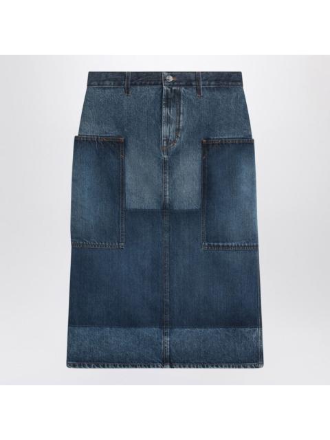 Gucci Women Light Blue Denim Midi Skirt With Horsebit In Cotton Woman