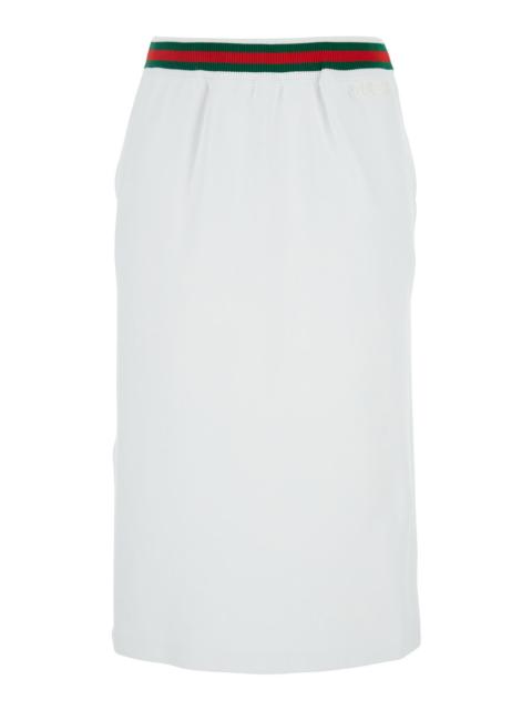 Gucci Women White Skirt With Web Detail On The Waist And Logo Lettering Embroidery On The Front In C