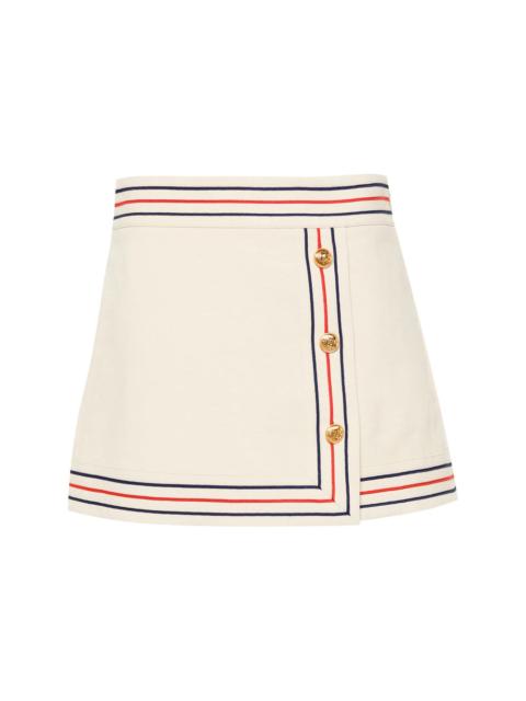 Gucci Women White Skirt With Web Detail On The Waist And Logo Lettering Embroidery On The Front In C