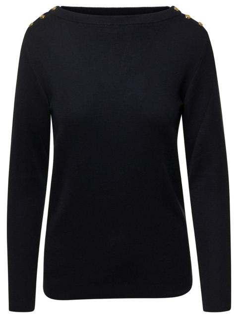 Gucci Women Black Sweater With Boat Neckline And Golden Logo Buttons In Cashmere Woman
