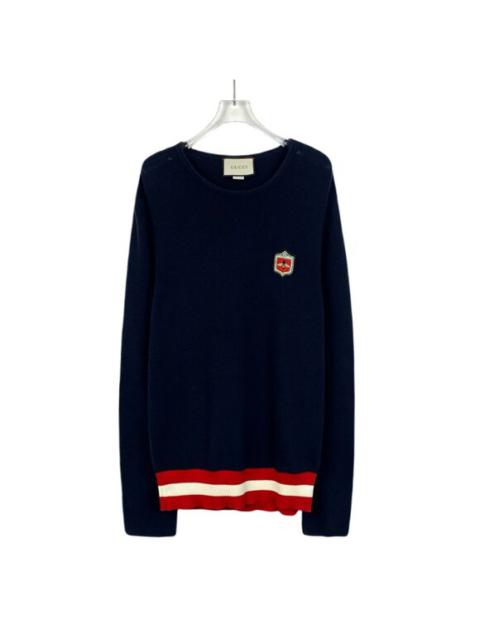 Gucci Mens Navy Wool & Cotton Sweater With Crest & Stripes Made In Italy Size La